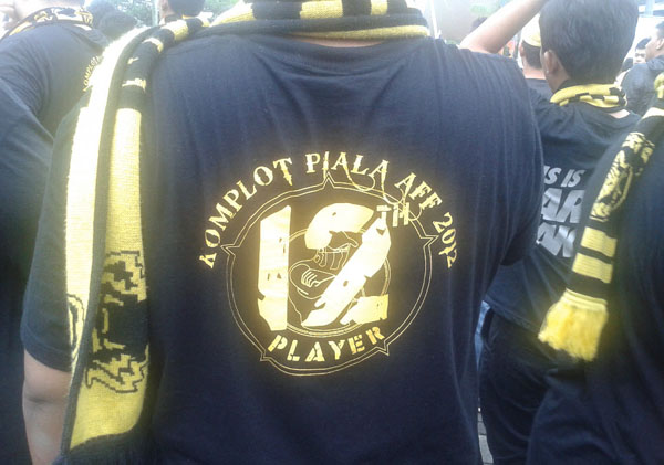 Kaos khusus yang dibuat pendukung Malaysia untuk Piala AFF 2012. (Foto: Jalu/SOCCER)